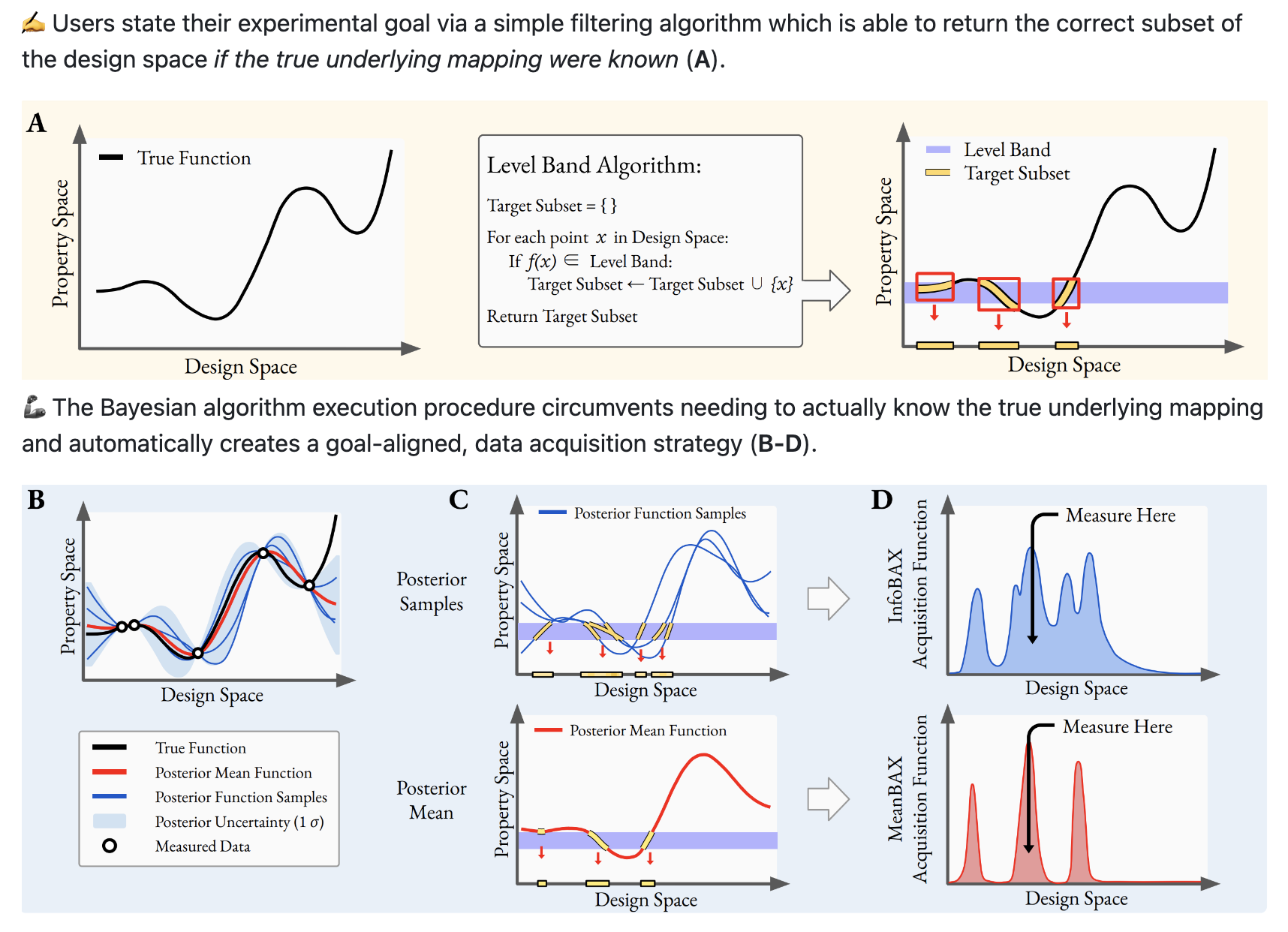 Very brief summary: this paper proposes several techniques to intelligently locate subsets of a material design space that are aligned with complex, user-defined goals. More details to come! For now, please check out our arxiv pre-print and code for further details!